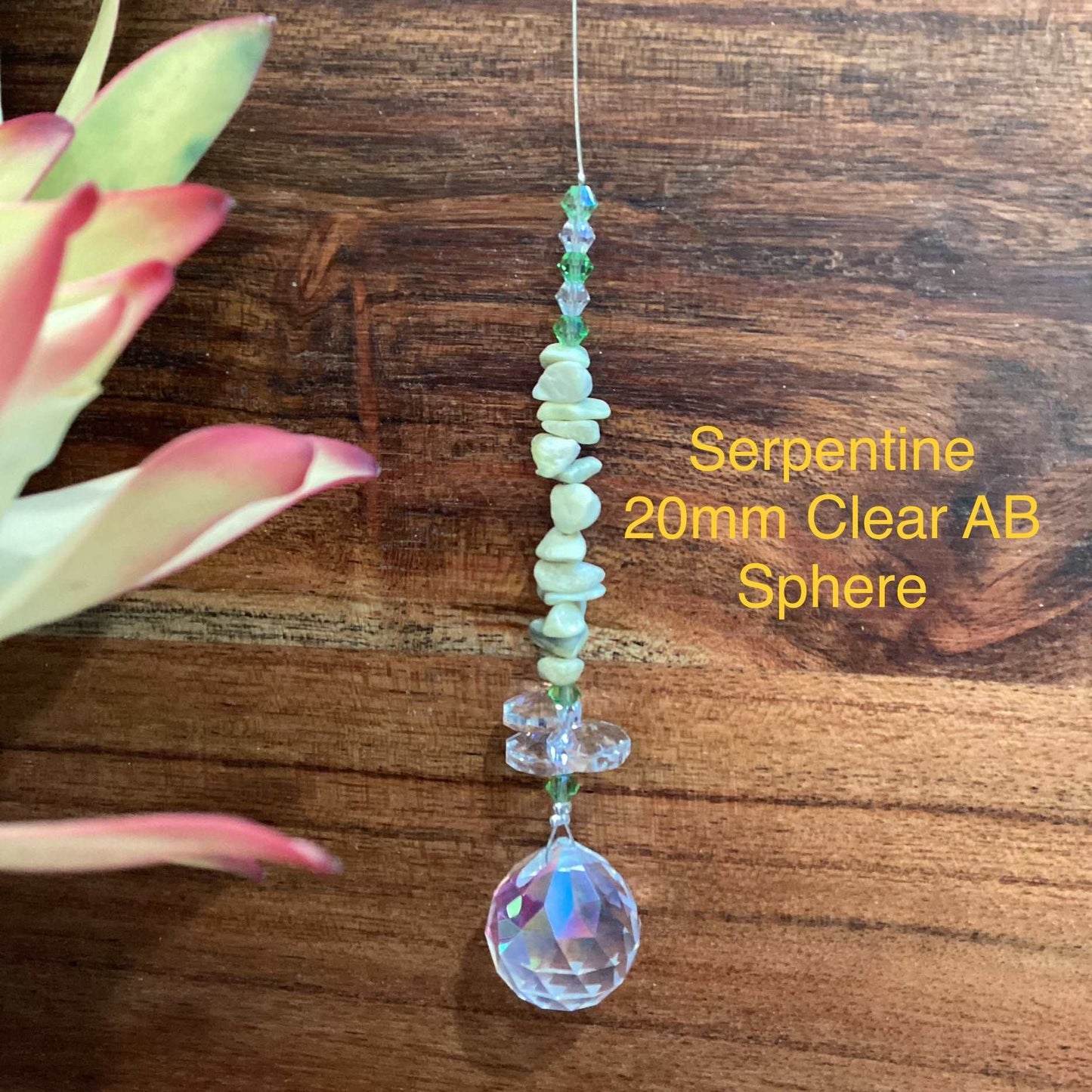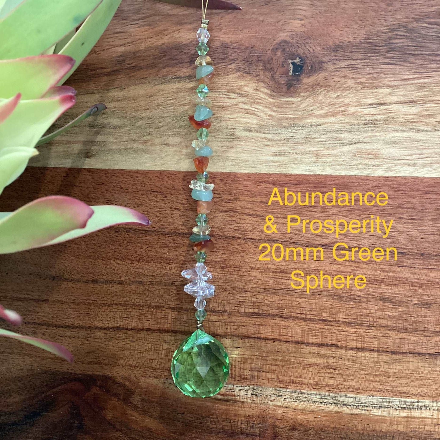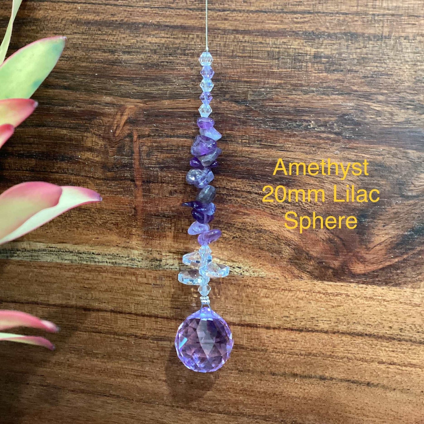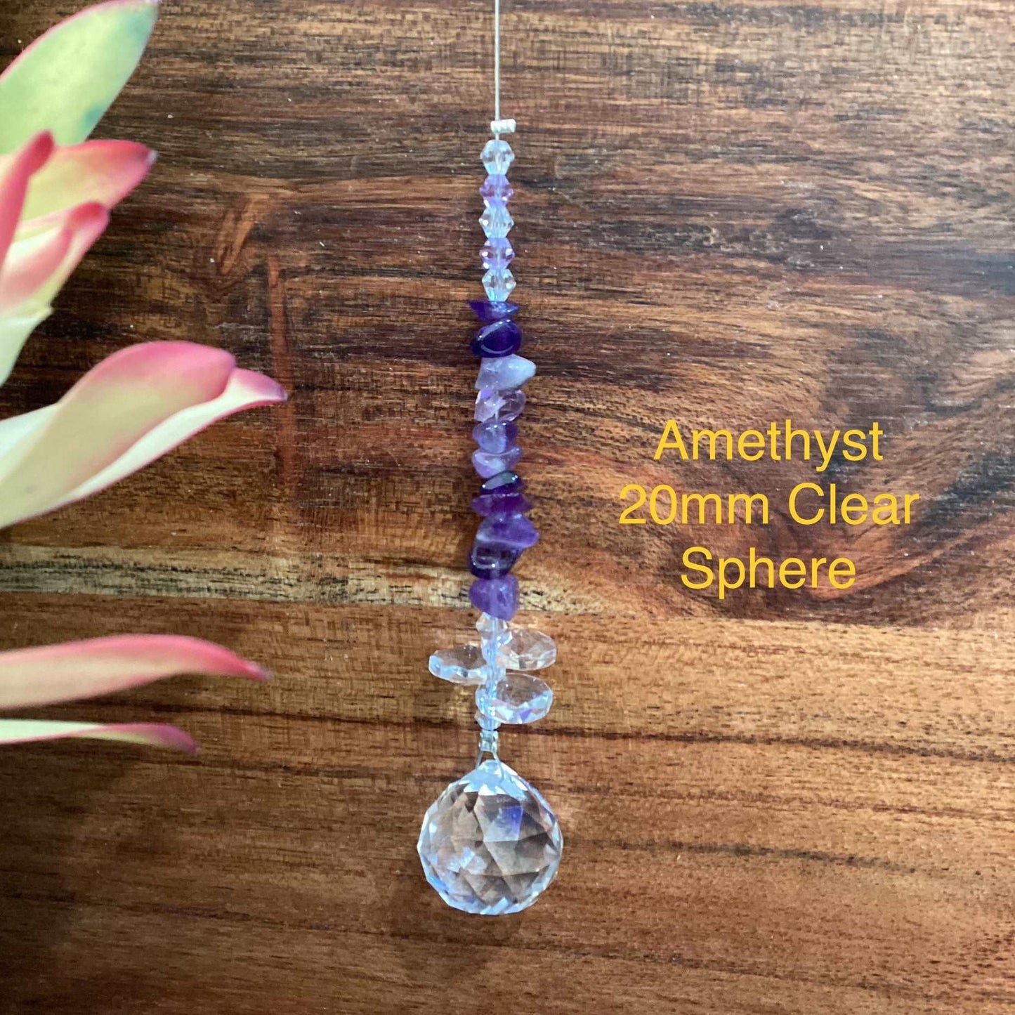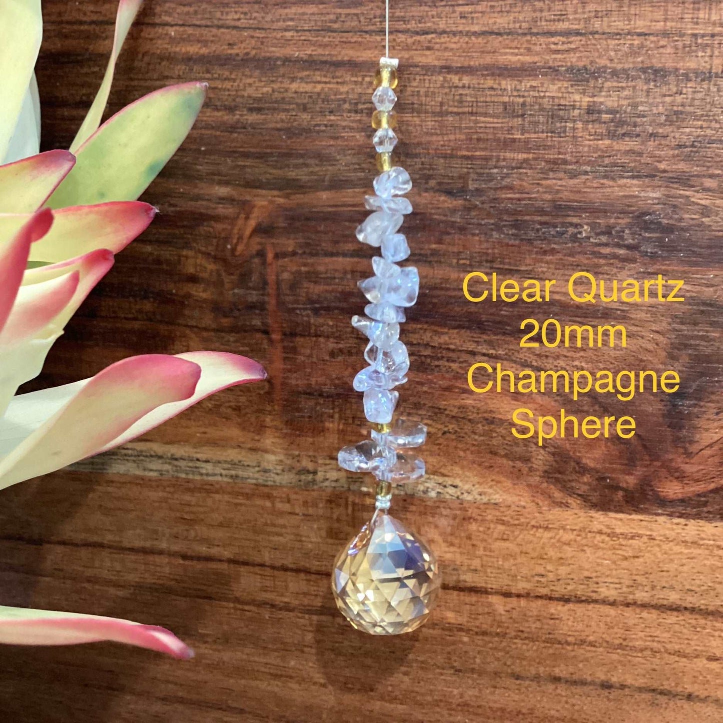 Our Crystal Sphere Suncatchers are available in sizes of 20, 30, 40, and 50mm, featuring a variety of clear and colored crystal spheres. These suncatchers are not just stunning decorative pieces; they are also believed to channel positive energy into an environment, as per crystal healing traditions. They come in multiple sizes and hues, embellished with authentic crystal chips and octagons, and each includes a descriptive tag that outlines the crystal's attributes. They are handcrafted in Laanecoorie, Victoria.