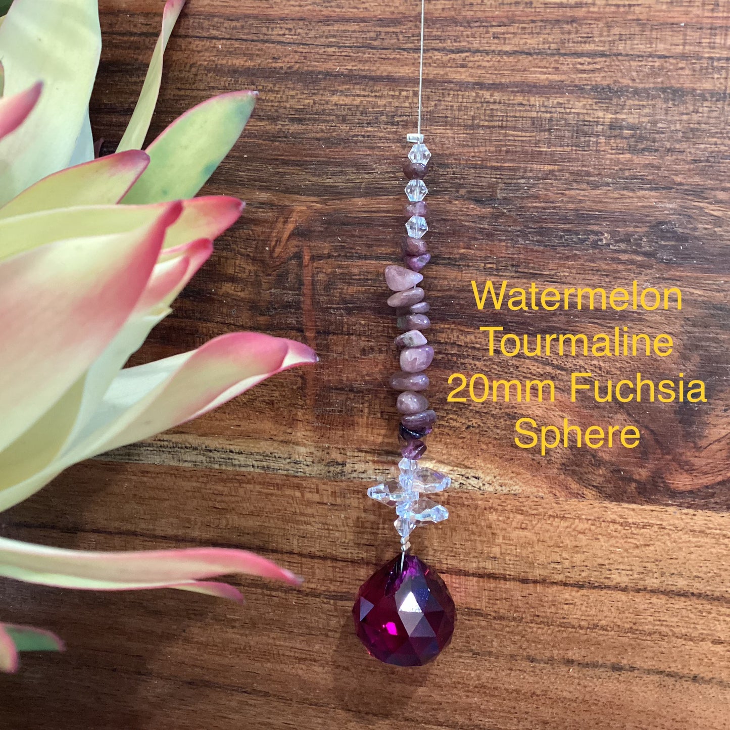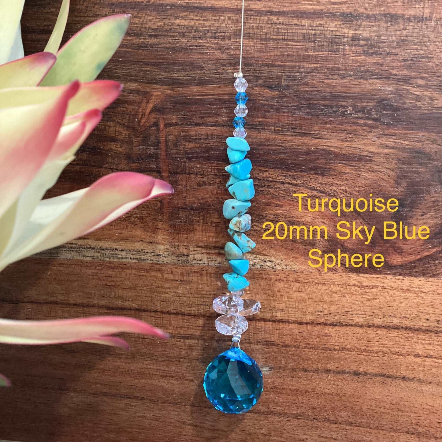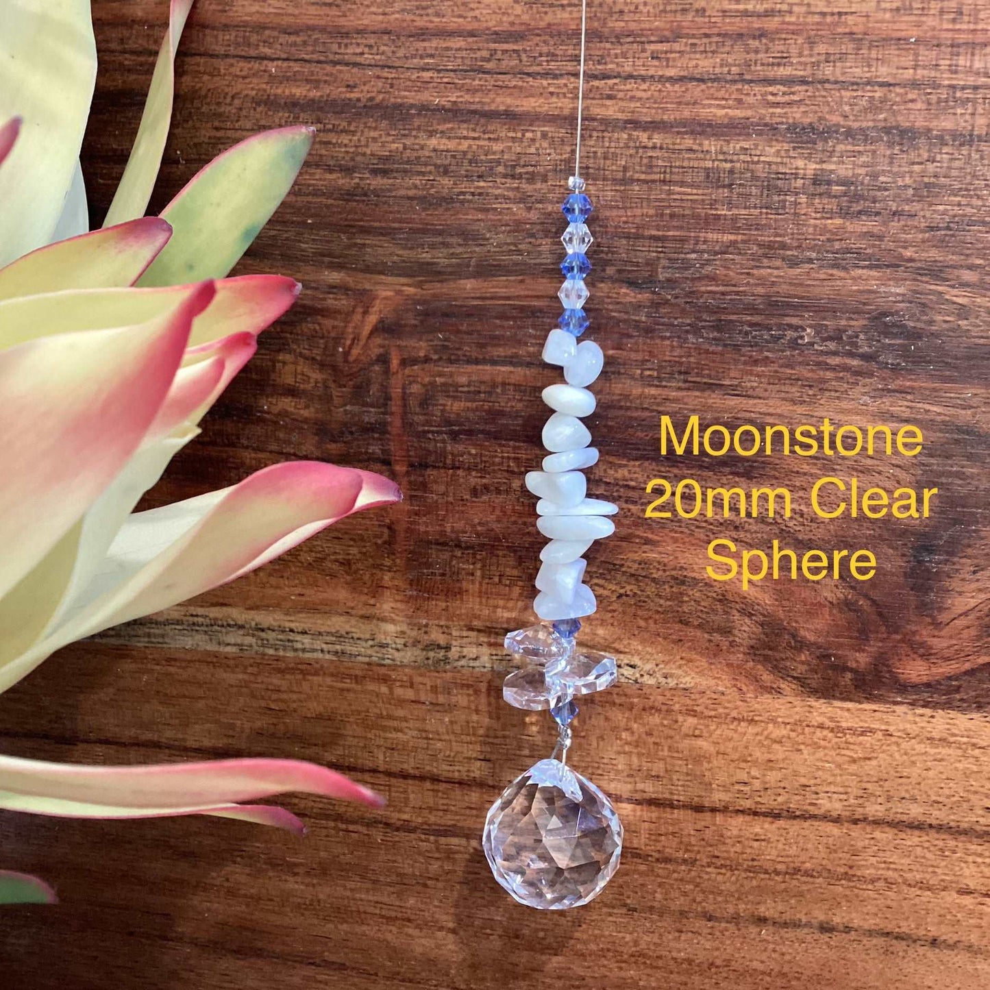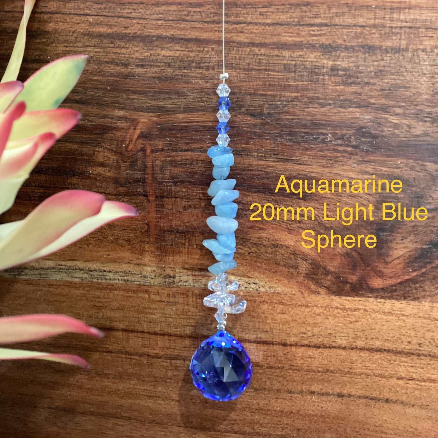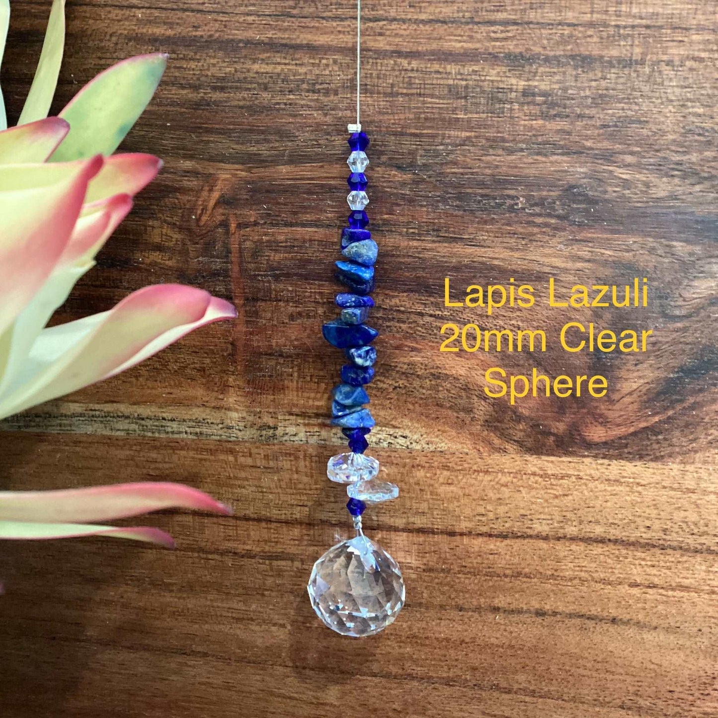 Our Crystal Sphere Suncatchers are available in sizes of 20, 30, 40, and 50mm, featuring a variety of clear and colored crystal spheres. These suncatchers are not just stunning decorative pieces; they are also believed to channel positive energy into an environment, as per crystal healing traditions. They come in multiple sizes and hues, embellished with authentic crystal chips and octagons, and each includes a descriptive tag that outlines the crystal's attributes. They are handcrafted in Laanecoorie, Victoria.