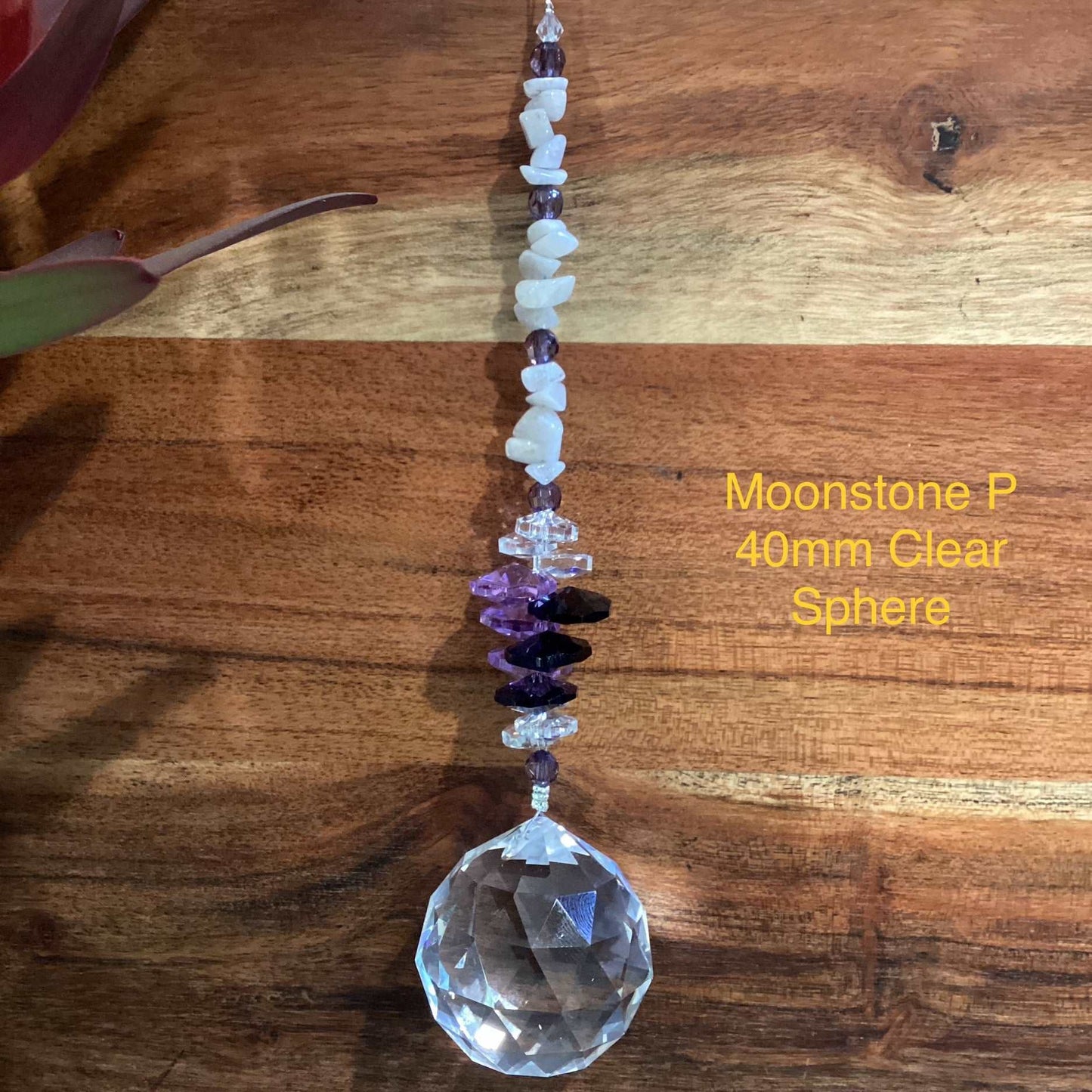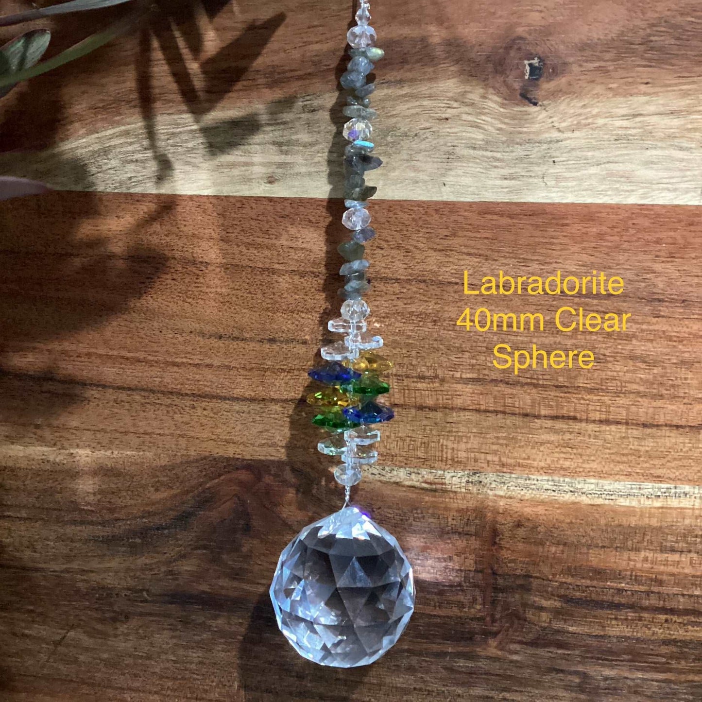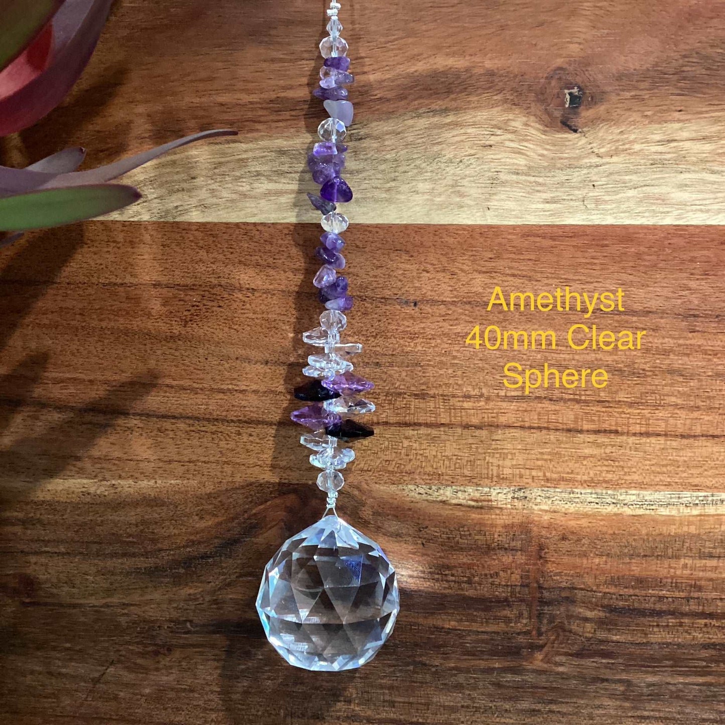 Our Crystal Sphere Suncatchers are available in sizes of 20, 30, 40, and 50mm, featuring a variety of clear and colored crystal spheres. These suncatchers are not just stunning decorative pieces; they are also believed to channel positive energy into a space, as per crystal healing traditions. They come in different sizes and hues, embellished with authentic crystal chips and octagons, and each includes a descriptive tag outlining the crystal's attributes. They are handcrafted in Laanecoorie, Victoria.
