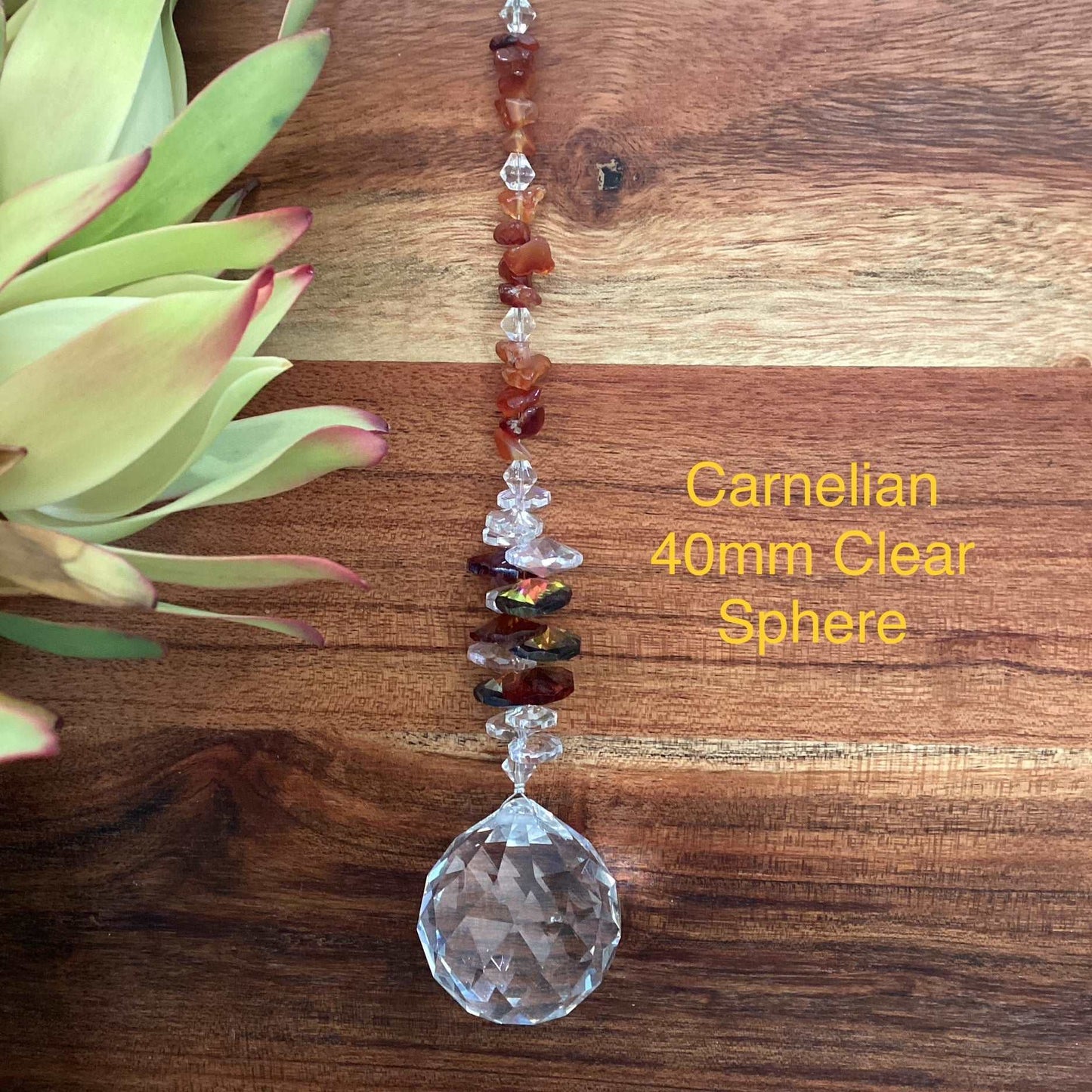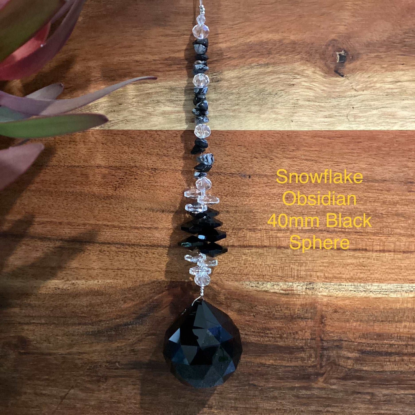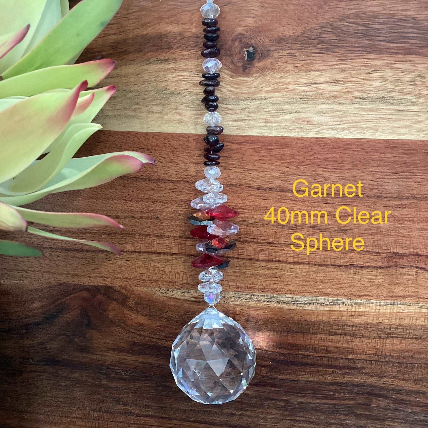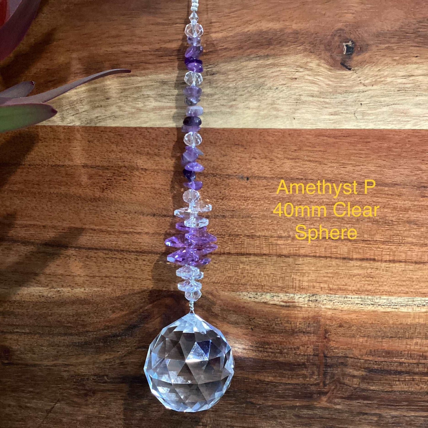 Our Crystal Sphere Suncatchers are available in sizes of 20, 30, 40, and 50mm, featuring a variety of clear and colored crystal spheres. These suncatchers are not just stunning decorative pieces; they are also believed to channel positive energy into a space, as per crystal healing traditions. They come in different sizes and hues, embellished with authentic crystal chips and octagons, and each includes a descriptive tag outlining the crystal's attributes. They are handcrafted in Laanecoorie, Victoria.