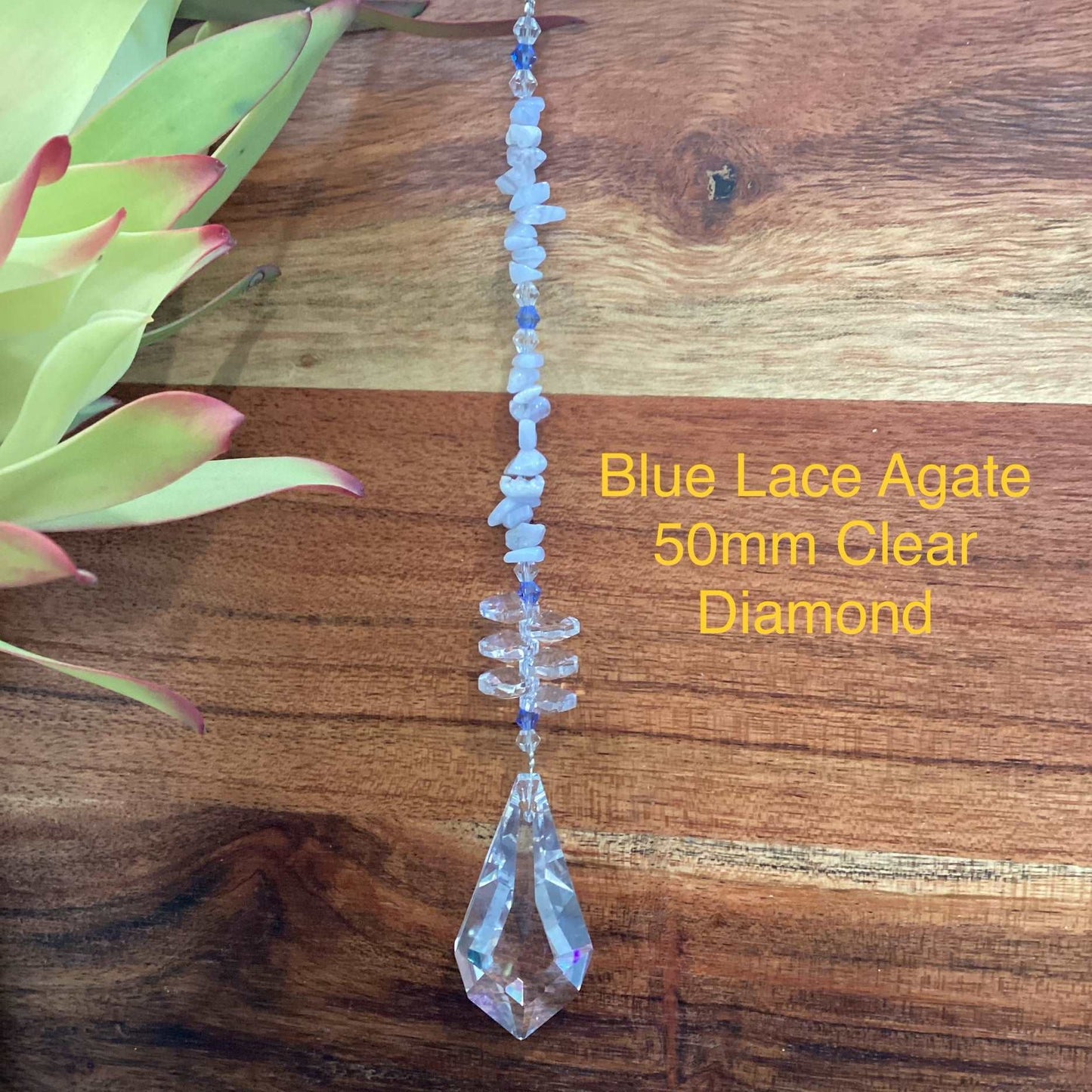 Blue Lace Agate Suncatcher with a Clear Crystal Diamond