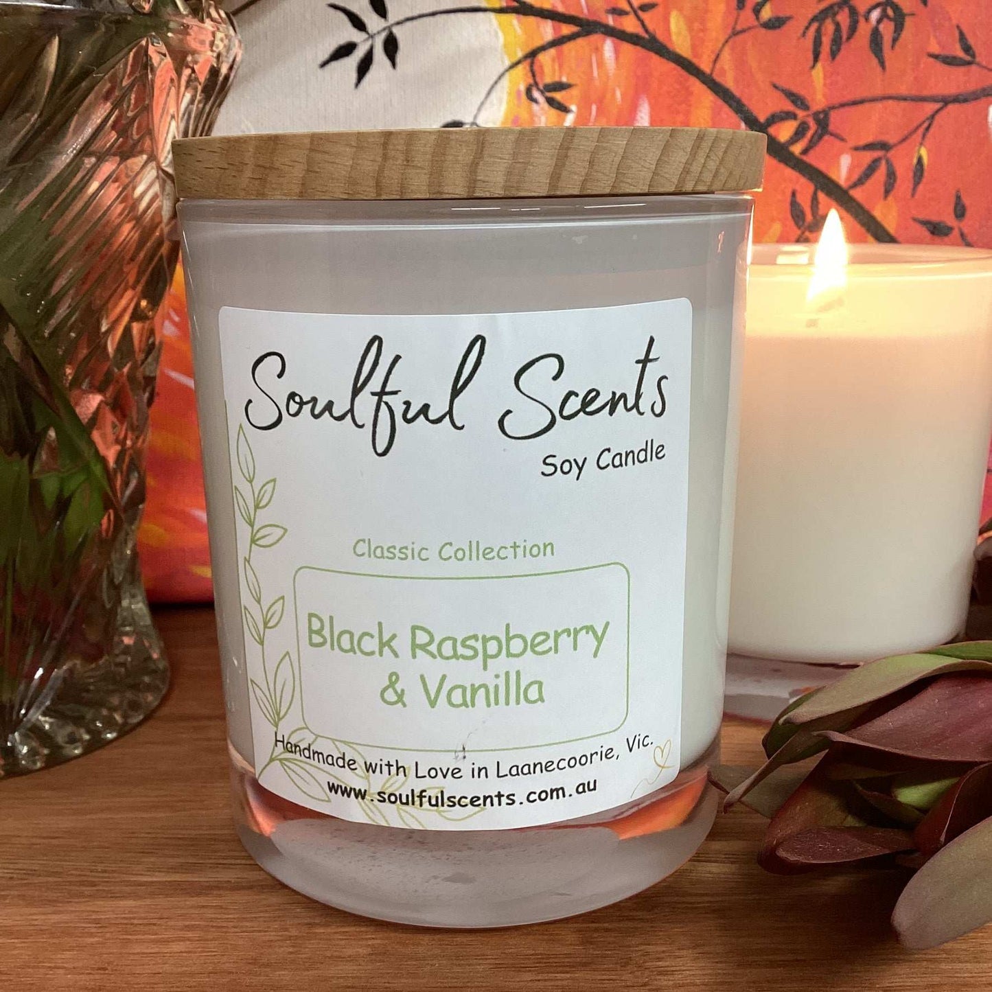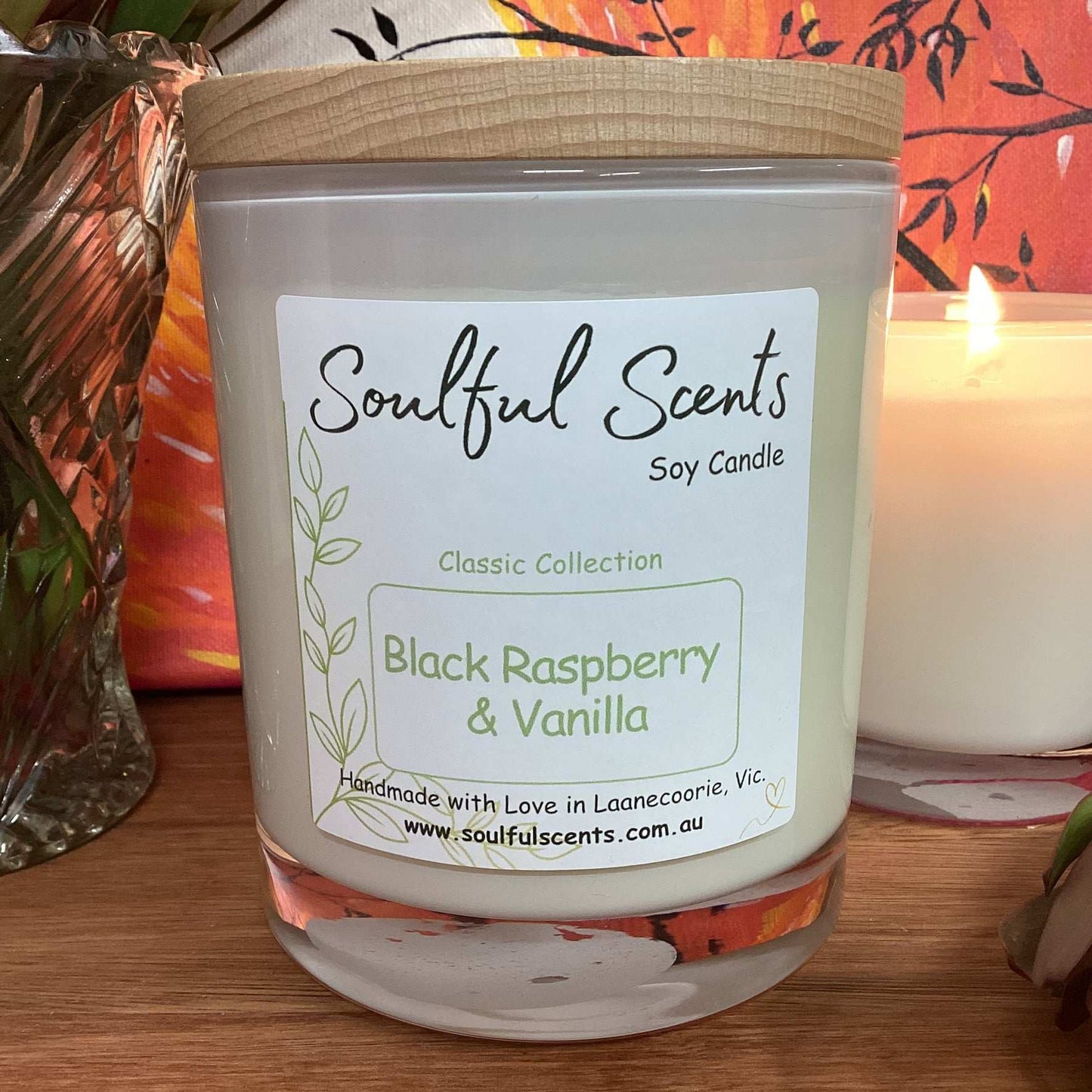 The Black Raspberry & Vanilla soy candle offers an enchanting blend of juicy blackberries and raspberries with a heart of delicate white florals, all rounded off with the comforting sweetness of vanilla and a hint of musk. This candle promises to transform any space into a serene haven, ideal for those moments when you need to unwind and relax. Its captivating fragrance is designed to create an inviting and warm ambiance, making it a delightful addition to your home. Experience the charm of this unique scent by bringing the Black Raspberry & Vanilla candle into your life.