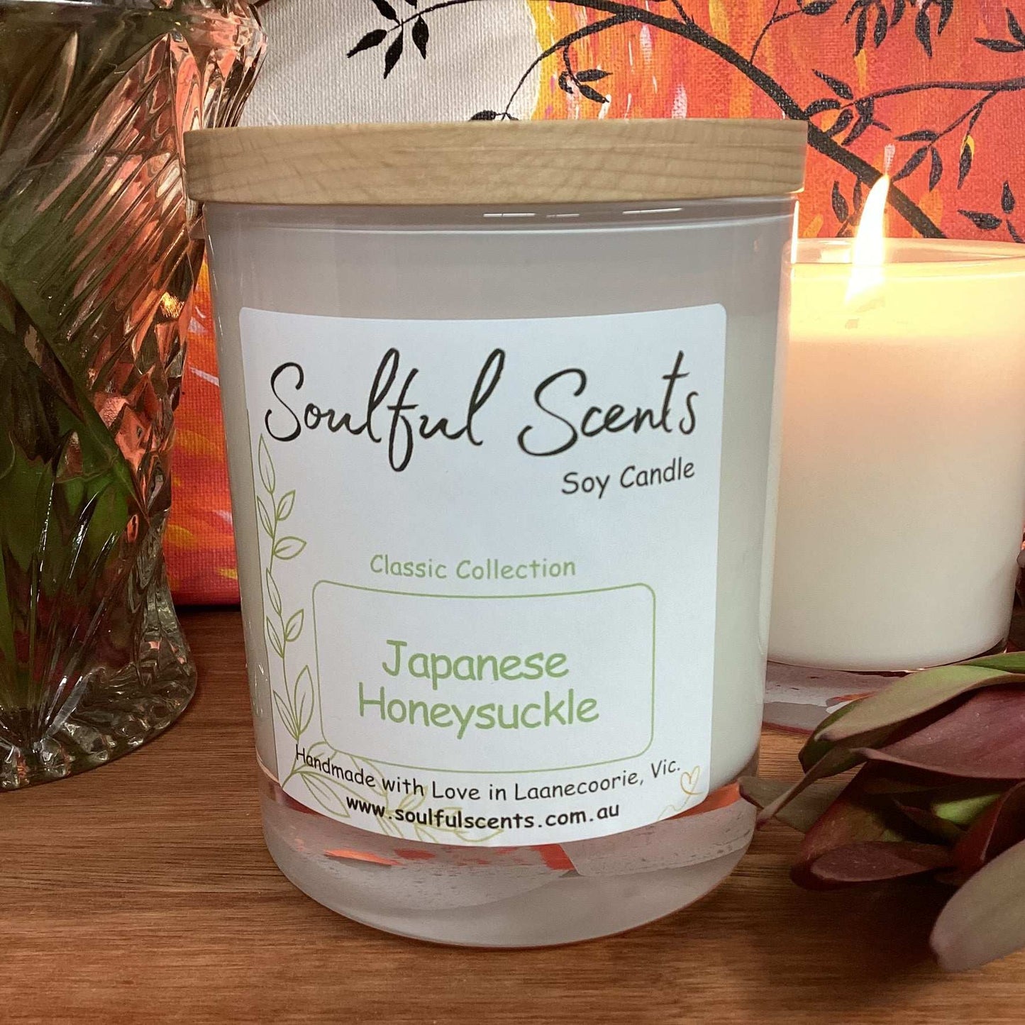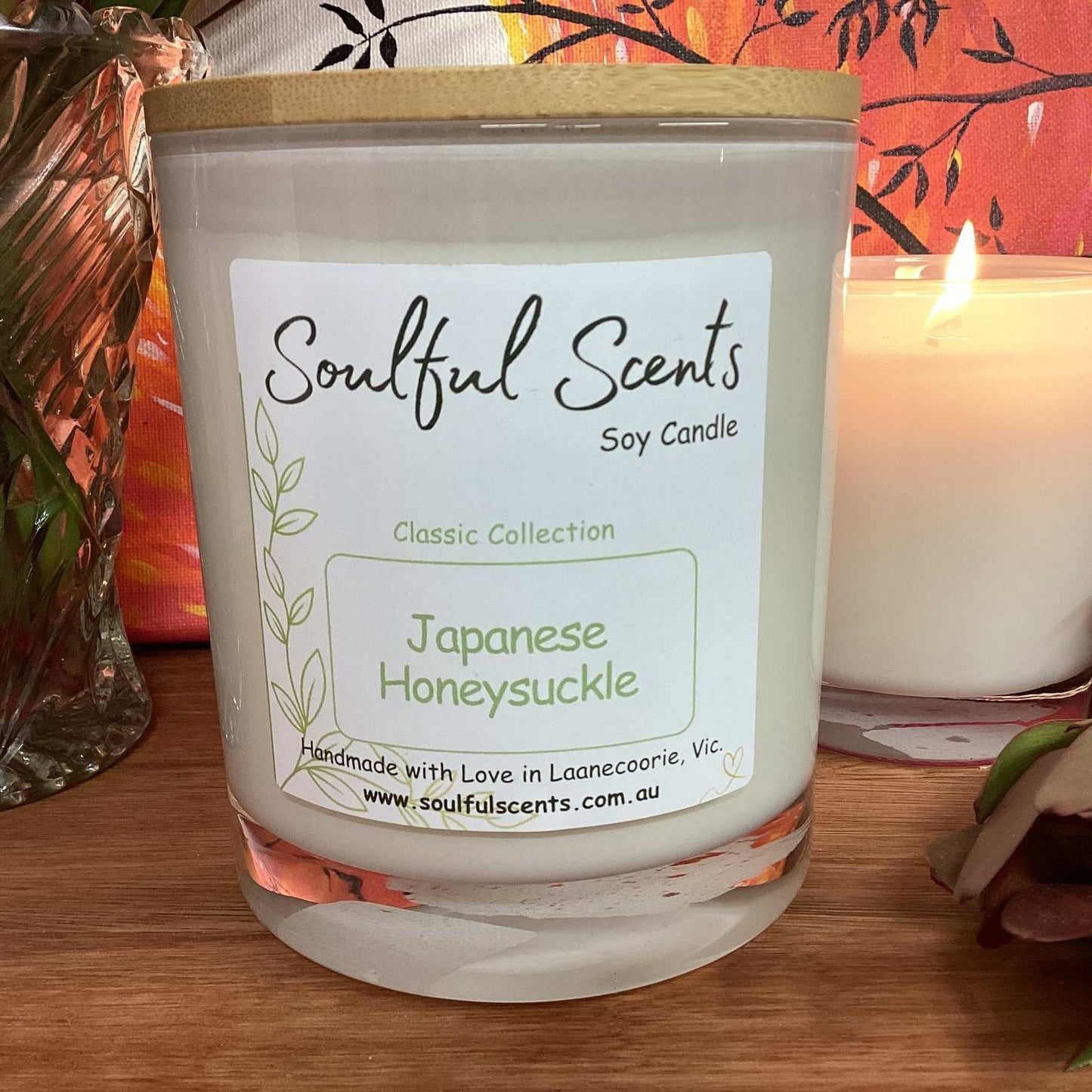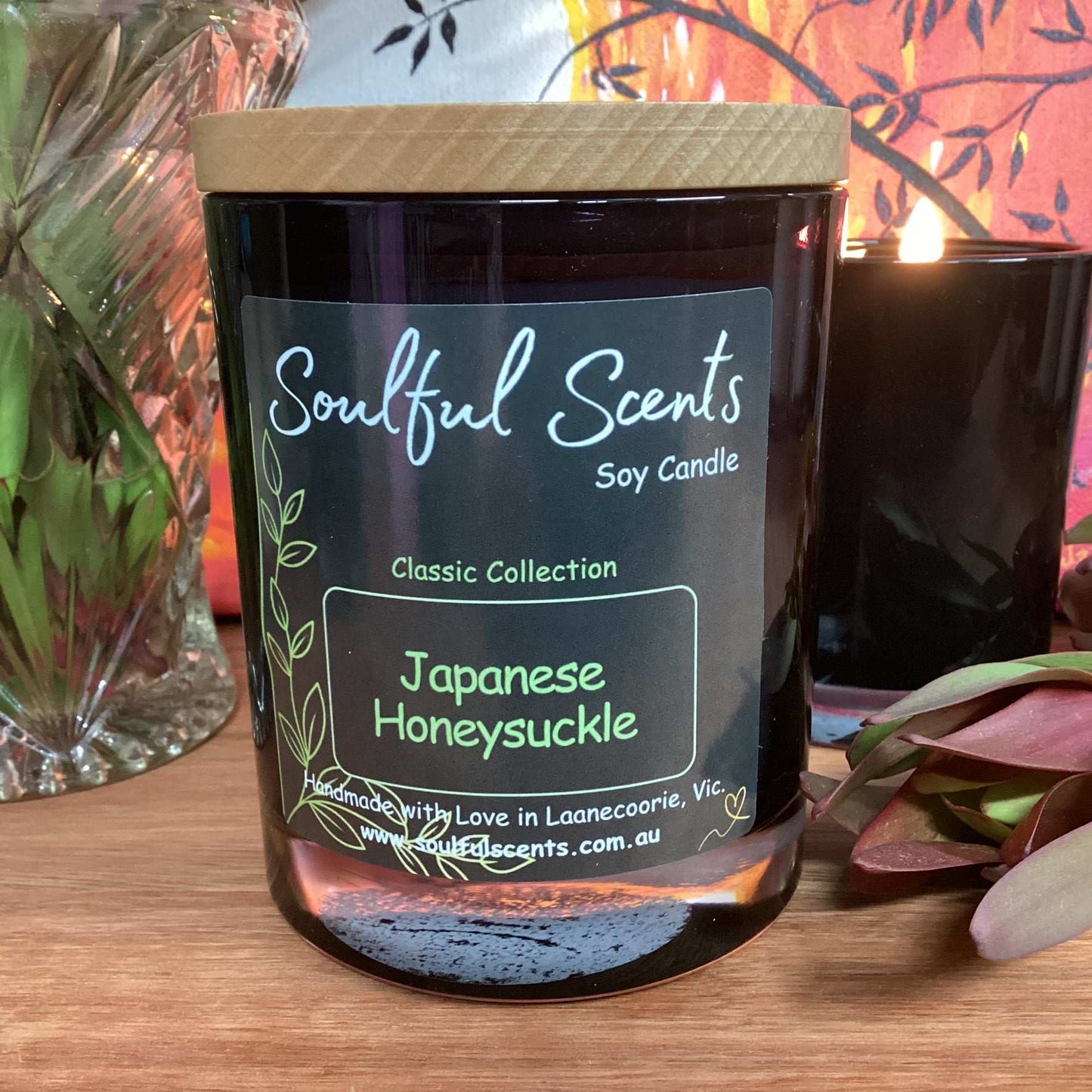 The Japanese Honeysuckle Soy Candle is a celebration of floral elegance and aromatic luxury. Its composition, a harmonious blend of Japanese Honeysuckle's sweet scent, complemented by the subtle fragrances of Jasmine and Neroli, creates an inviting atmosphere. The warm undertones of Vanilla and Malt add a comforting finish to the scent profile, making it an ideal choice for those seeking to enhance their living space with a touch of sophistication and tranquility. This candle promises to be a cherished addition to any collection, perfect for gifting or personal indulgence.