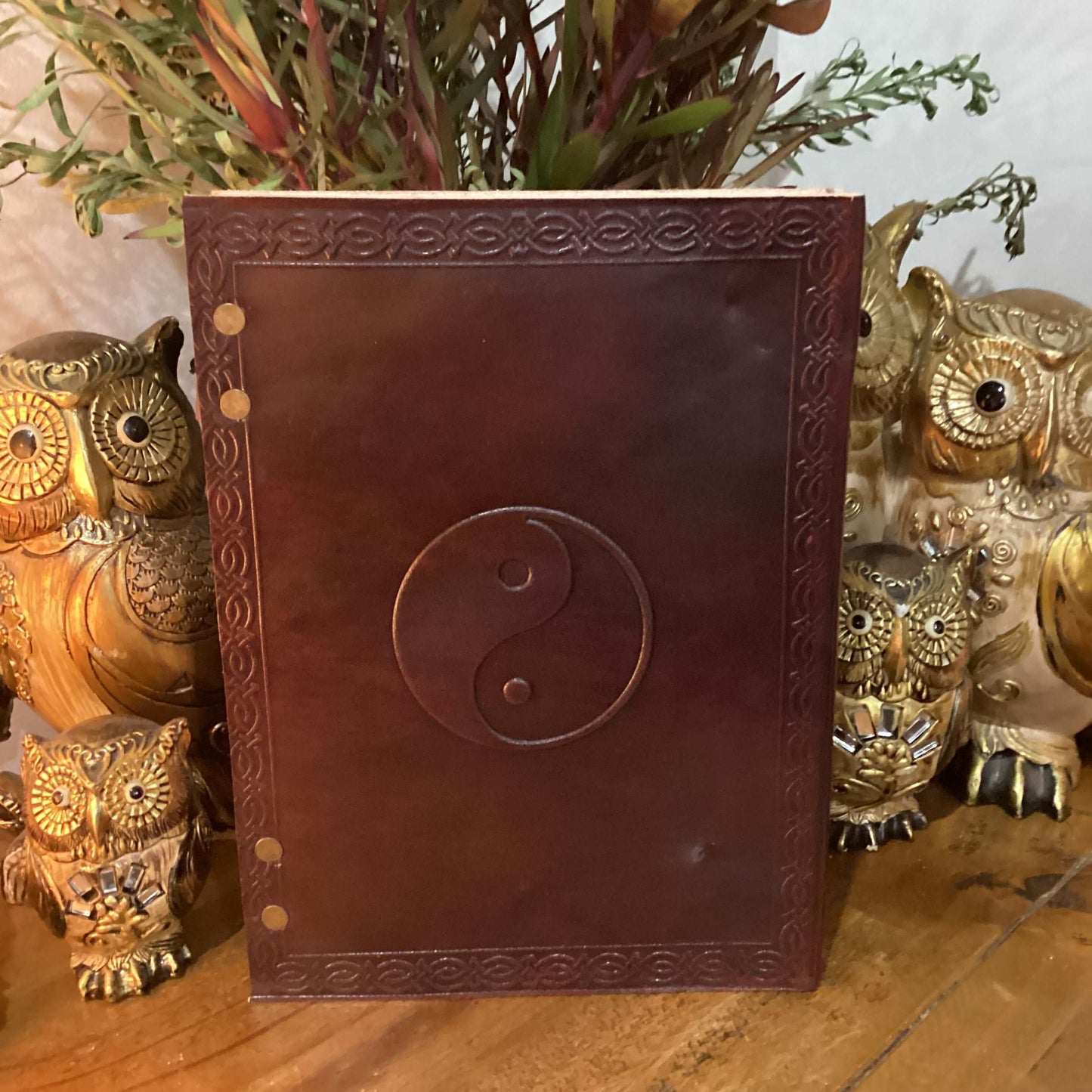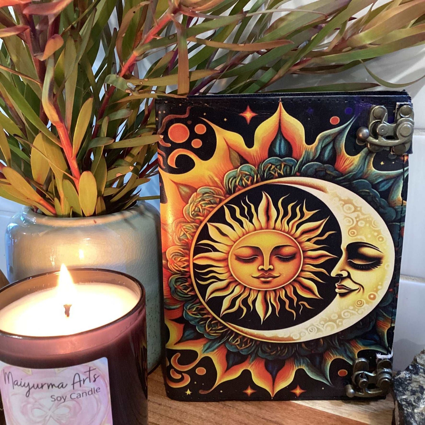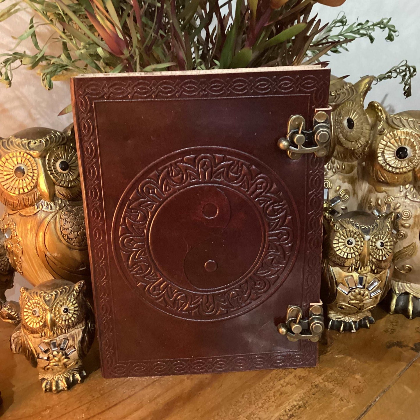 These leather journals are not only a testament to traditional craftsmanship but also a nod to sustainable practices. The embossed symbols on the covers add a touch of personalization and mystique, while the recycled paper pages inside speak to a commitment to environmental responsibility. The string tie or clasp closure is both practical and charming, ensuring that the contents remain secure and private. This combination of quality materials, skilled workmanship, and eco-friendly design makes these journals a meaningful choice for those who value artistry and sustainability.